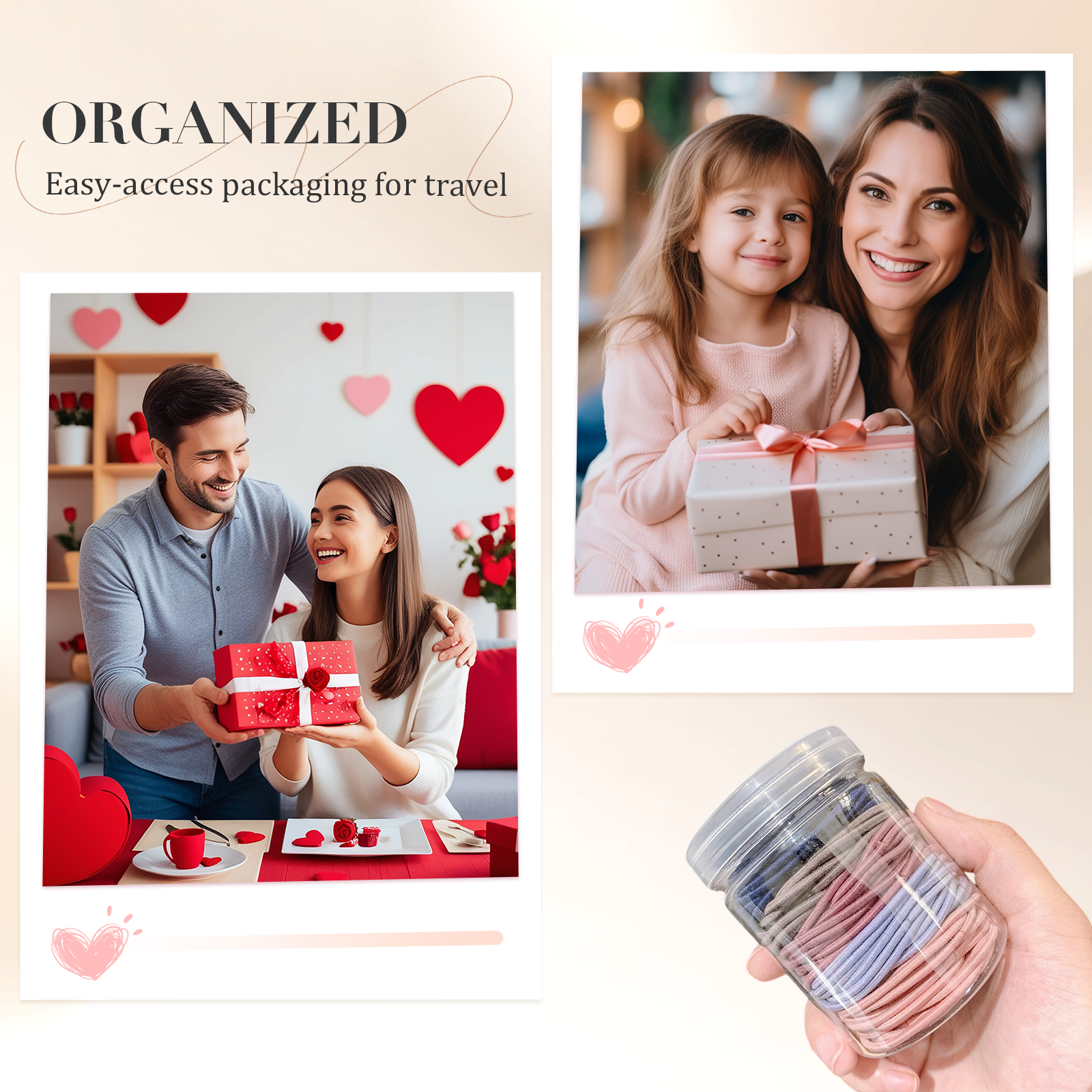 ALMACENAMIENTO PRÁCTICO Y FÁCIL ACCESO : El frasco compacto facilita el almacenamiento y el acceso. Se acabaron los enredos: solo necesitas una goma para el pelo cuando la necesites. El frasco mantiene todo ordenado, organizado y listo para usar rápidamente dondequiera que estés.