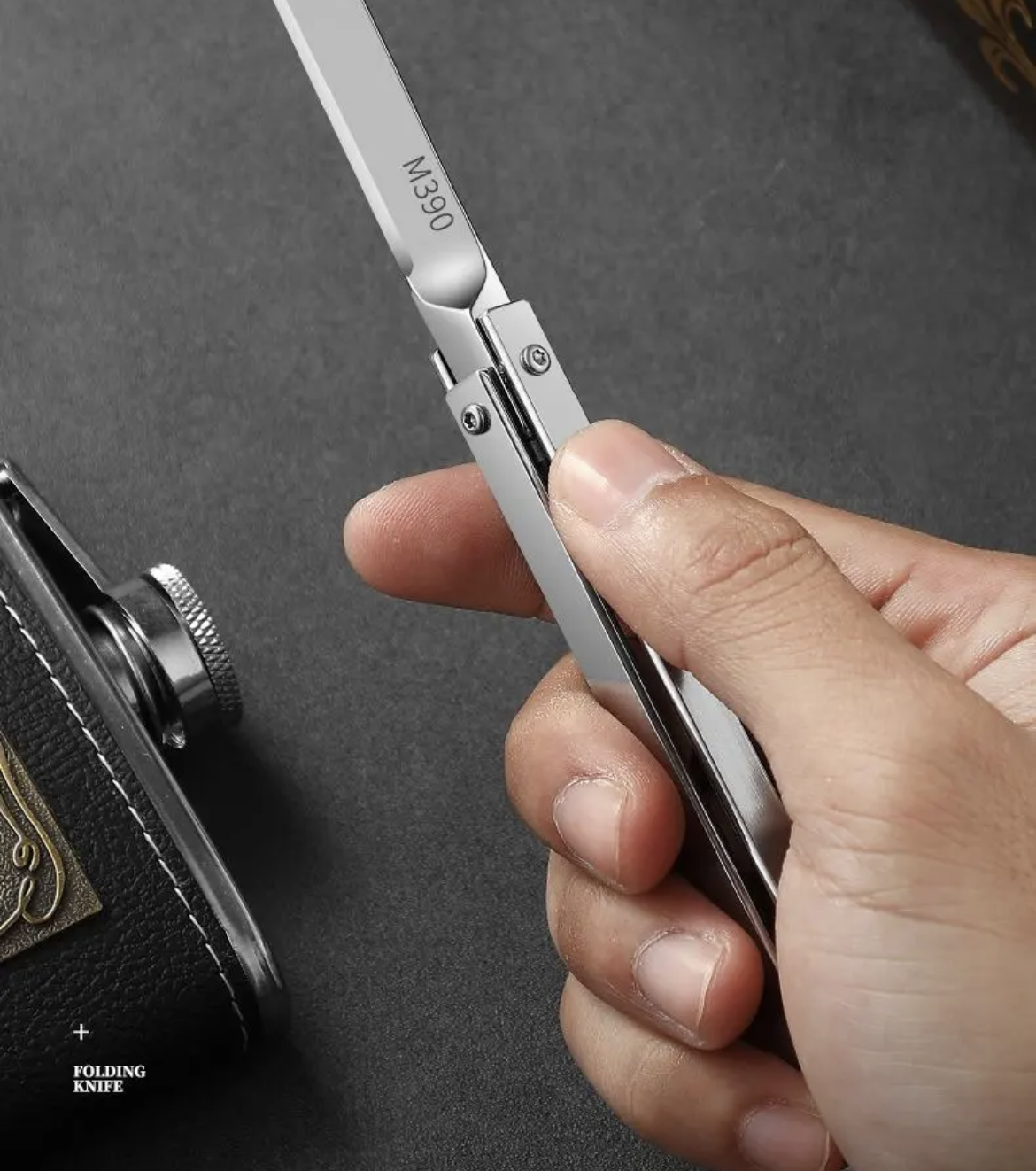 • Hojas afiladas M390: El diseño delgado facilita su transporte, y su hoja ultrafina de alto rendimiento en acero M390 permite realizar una amplia variedad de tareas de corte con facilidad..