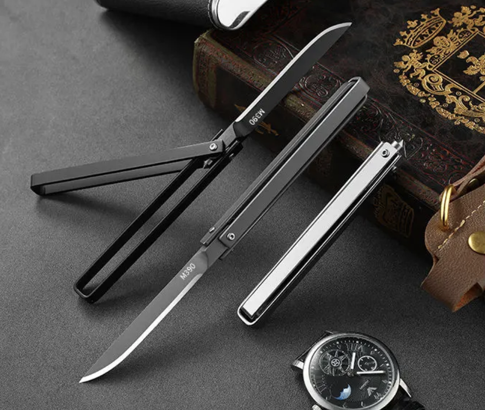 Ala de aleación de titanio TC4 con proceso CNC a mano, con hoja de acero M390.