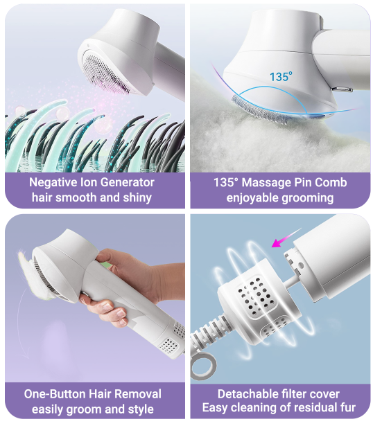 Secador de pelo para mascotas silencioso con cepillo Slicker