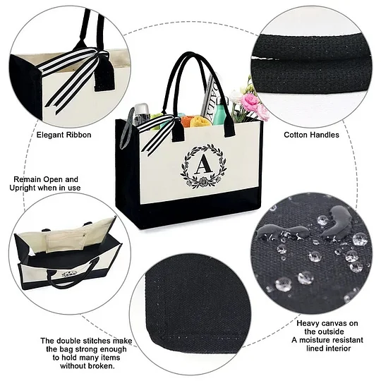 ❤ Bolsa de Regalo Perfecta: Una bolsa de mano personalizada puede ser una forma adorable de agradecer a tus damas de honor, dama de honor, madre de la novia/novio e invitados, su amor y apoyo en tu día especial. Esta bolsa con monograma es lo suficientemente grande como para que quepan regalos más grandes, como kits de spa o albornoces. La parte superior abierta permite un fácil acceso y un uso sin complicaciones.
